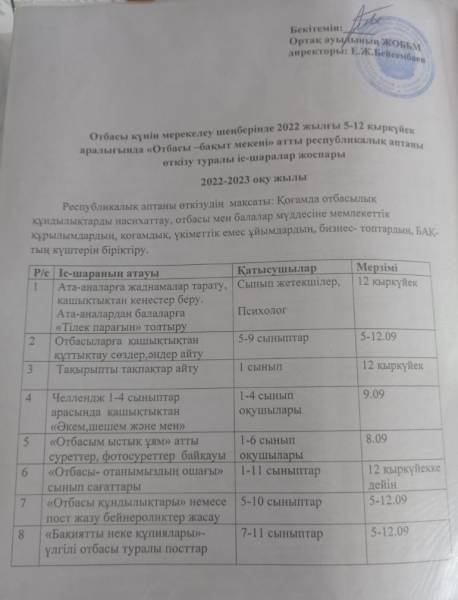 Мероприятие "Отбасы-Бақыт мекені " проводится в нашей школе