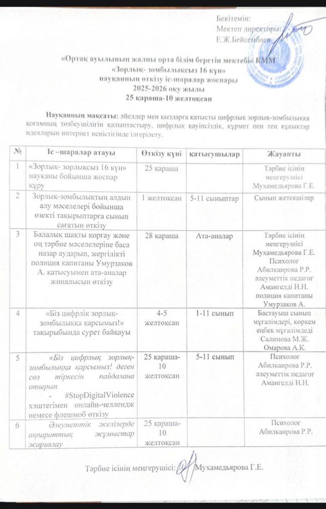 Коммунальное государственное учреждение "Общеобразовательная школа села Ортак отдела образования по Зерендинскому району управления образования Акмолинской области"