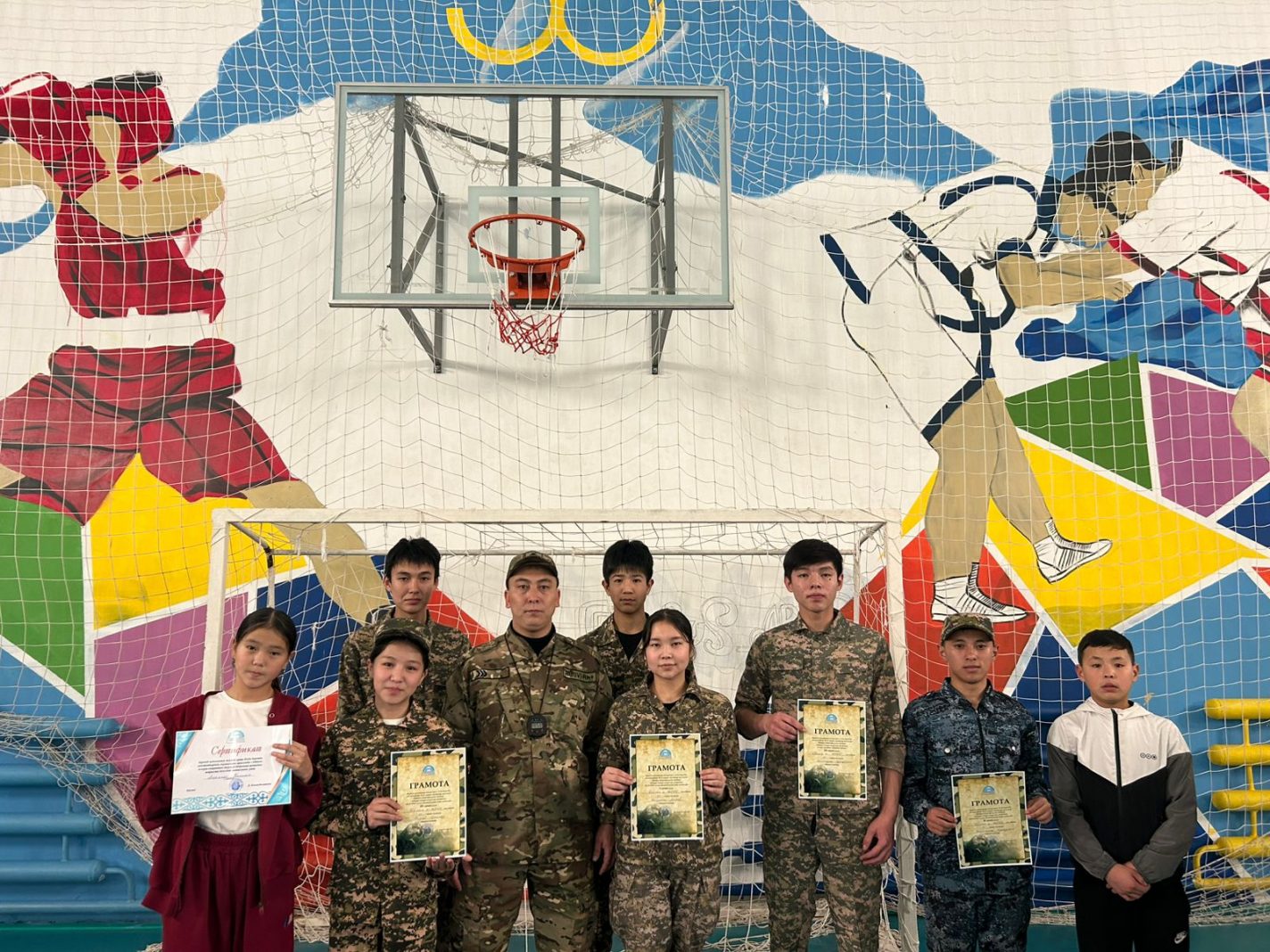Зеренді ауданының жалпы орта білім беретін мектептерінің 10-11 сынып оқушылар арасында «Намыс» спартакиадасы аясында «Айбын» әскери-спорттық ойынында әскери қорғаныс жинағын киюден